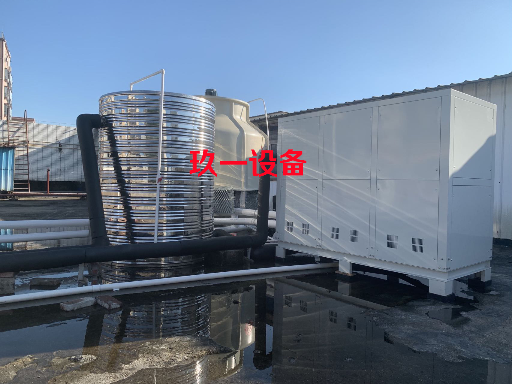近期剛好為某公司做了一套車間降溫用水冷式冷水機組,選用的是30P水冷冷水機。