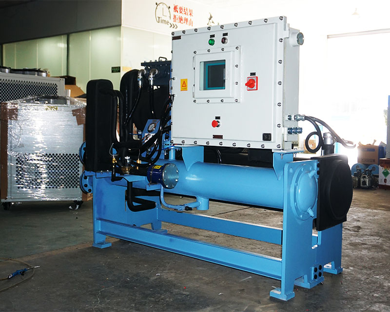 防爆型冷水機組是在標準型冷水機組的基礎上,為防止電氣設備引起周圍爆炸性氣體環境引燃而采取的特定的防暴措施。防爆冷水機組是一個整體防爆系統,其設計上除了要考慮所有電氣元件的防爆性能外,還要考慮機組的整體防爆性能符合標準要求。防爆安全的保障除了產品本身的性能外,還有賴于合理的選型、正確的使用和維護。