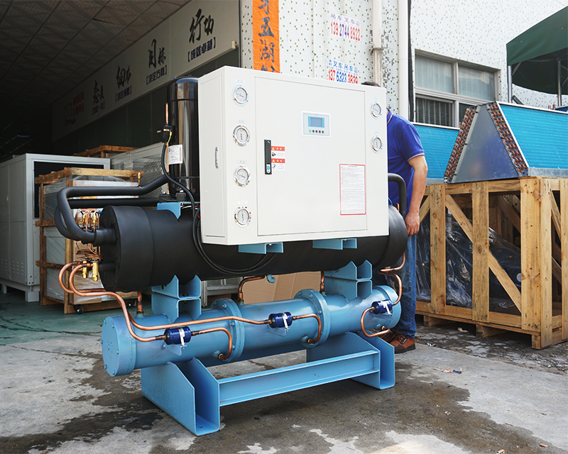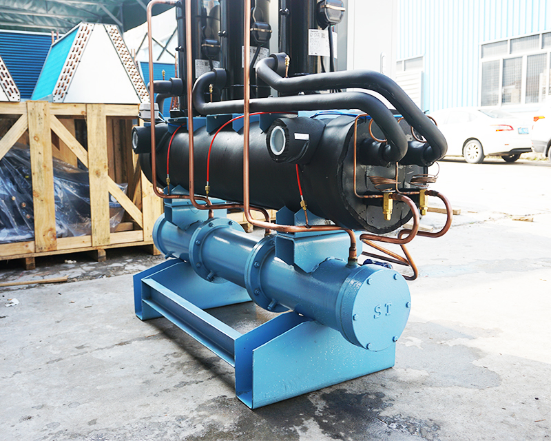 開放式冷水機(jī)主要由壓縮機(jī)、蒸發(fā)器、冷凝器、電控系統(tǒng)、冷凍配件組件組成,開放式冷水機(jī)組內(nèi)部只有完善的制冷和控制系統(tǒng),其水路系統(tǒng)并不完善 。因為其機(jī)組不帶水箱水泵,需要客戶根據(jù)自己的實際情況來進(jìn)行匹配。